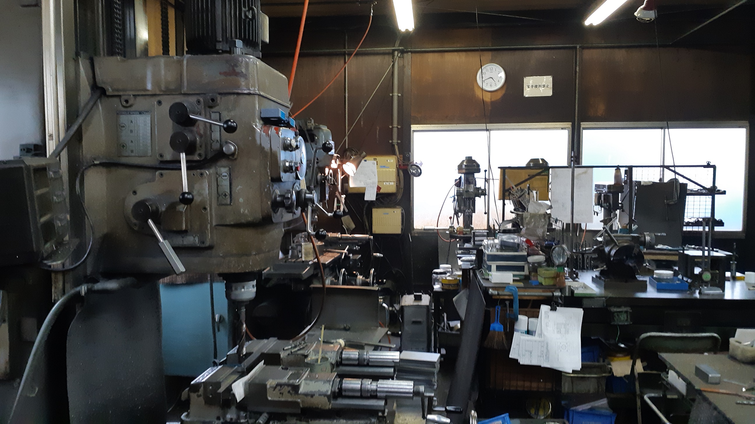 | 保有設備 | 旋盤 2台 フライス盤 (横フライス含む) 5台 ボール盤 4台 ラジアルボール盤 1台 スロッター 1台 平面研磨機 1台 |