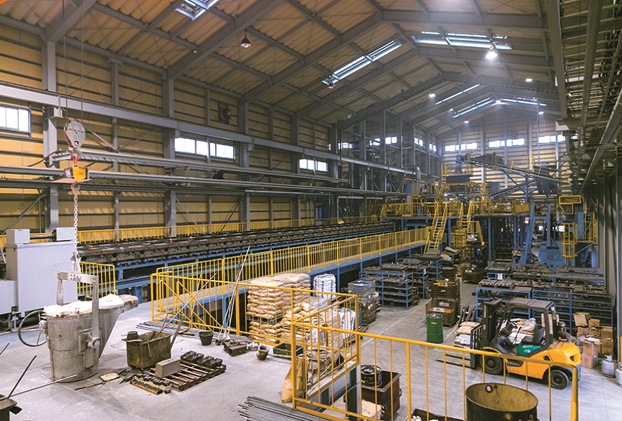 | 保有設備 | HSP自動造型ライン、高周波誘導路(2t)2基、エプロンショット機、バリンダー、その他鋳造関連設備。(350t/月産) |