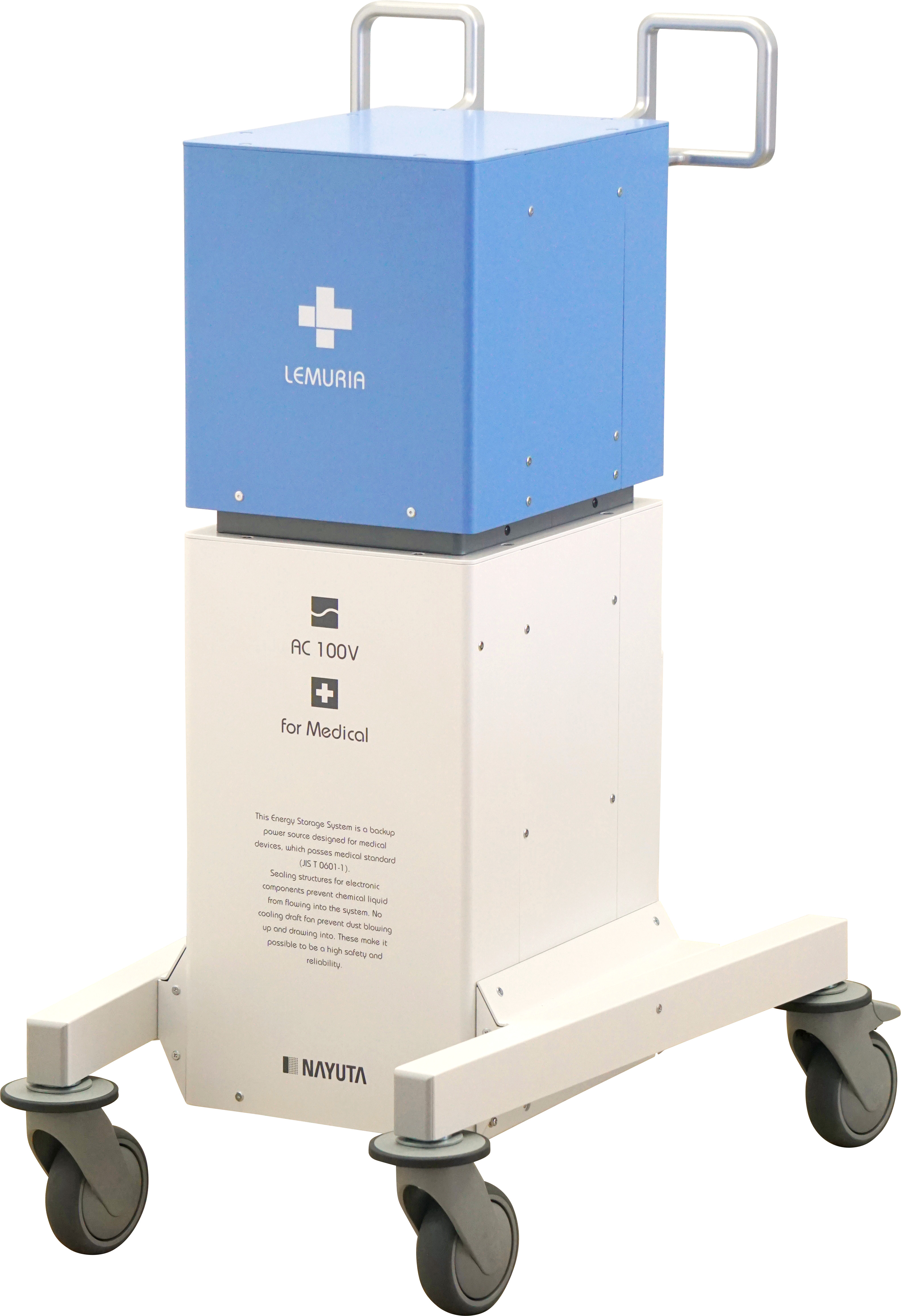 自社製品では医療機器規格 S-JQA を認証した医療機器用リチウムイオン蓄電装置「LEMURIA」や、ワクチン用フリーザーのバックアップ電源としても活用されている非常用蓄電システム「CUBOX」全天候型蓄電式LED投光器「QLIGHT」「QPOWER」を販売。