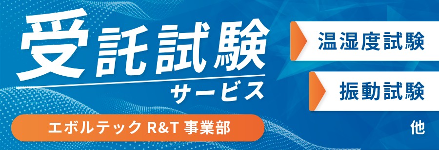 | 保有設備 | 〇複合環境試験装置 ・EMIC製:FX-26K/60 ・EMIC製:FX-35K/60 〇塵埃試験機 ・スガ試験機製:DT-1F |